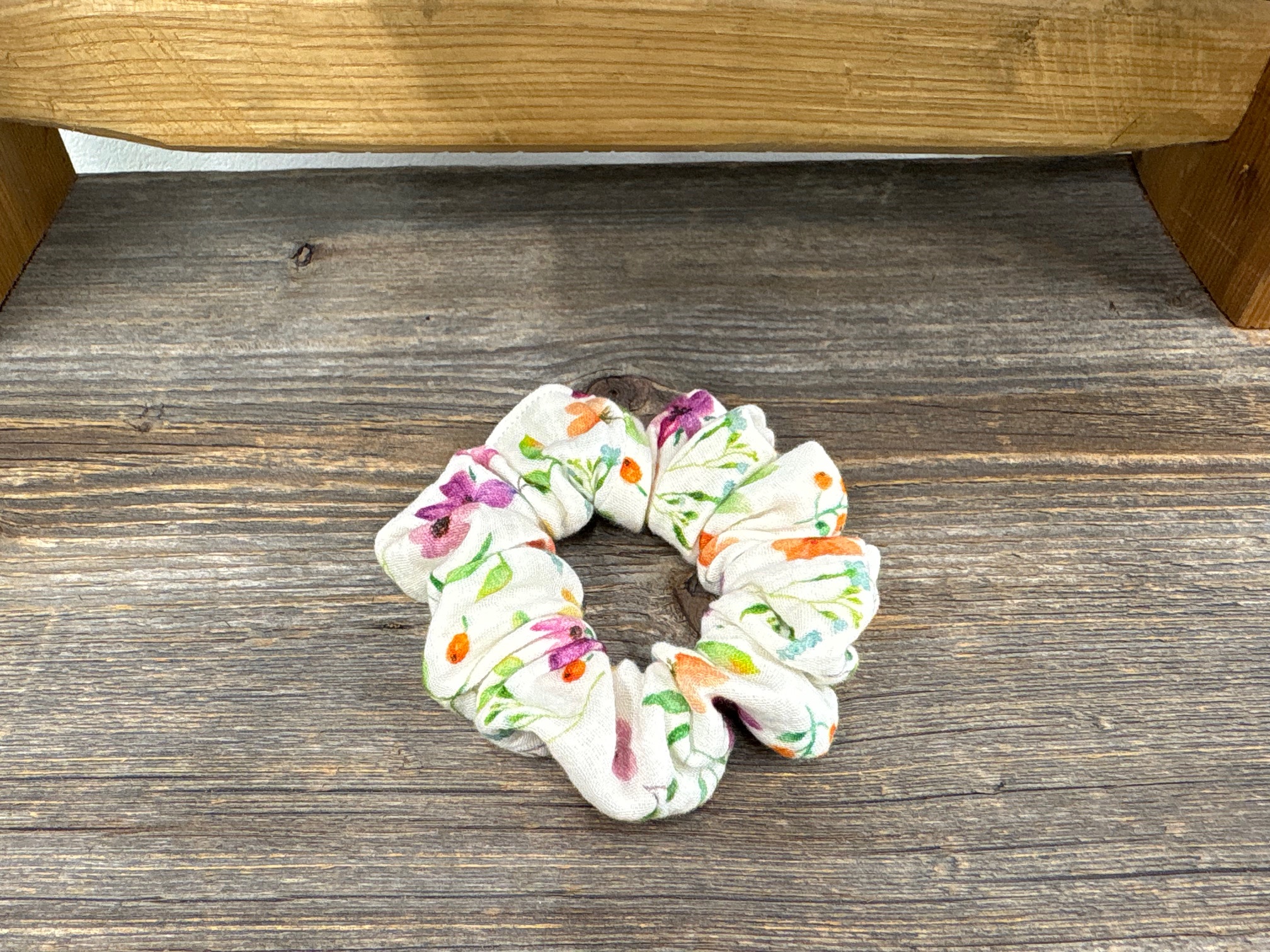 chouchou blanc-crème à fleurs